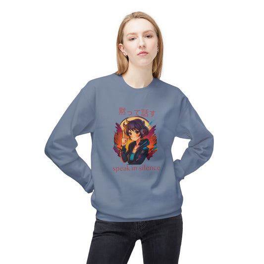 Anime Girl with 'SPEAK IN SILENCE' Japanese & English Text Sweatshirt (unisex)
